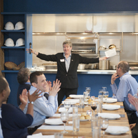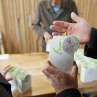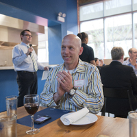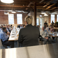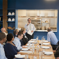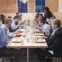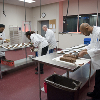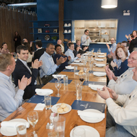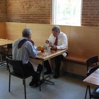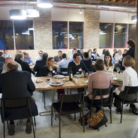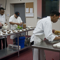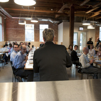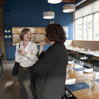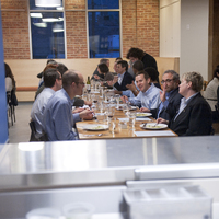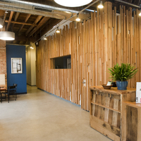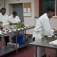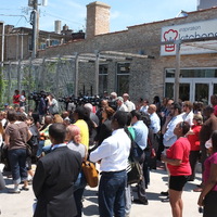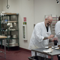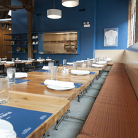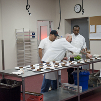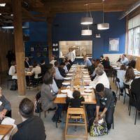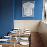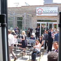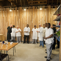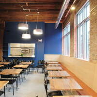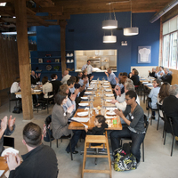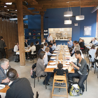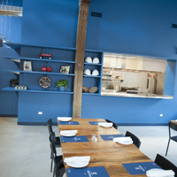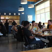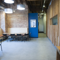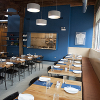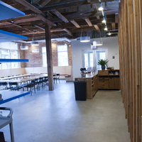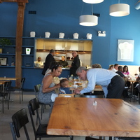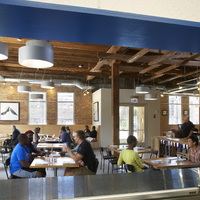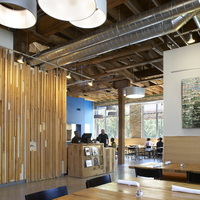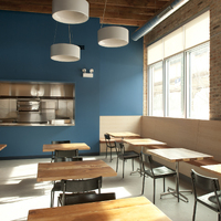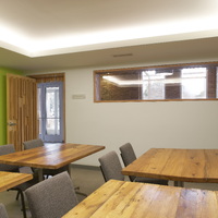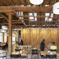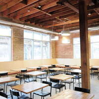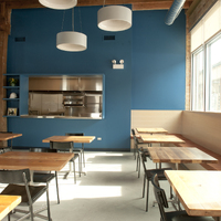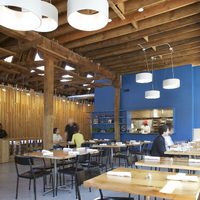 The restaurant, kitchen, and offices are housed in a 7,315-square-foot former factory next to an elevated rail station. The design features a light and airy interior and employs a wide range of energy-efficient elements, including a solar thermal hot water system. A large front window connects diners to the street, and a garden onsite and nearby community garden provide fresh produce for meals.