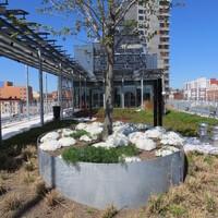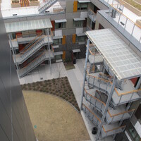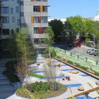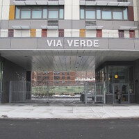 The $98.9 million project, with cascading roof gardens and a distinctive facade, stands out among the brick buildings and towers in the neighborhood and serves as a creative model for affordable and sustainable design. The LEED Gold certified project includes photovoltaic solar panels on the rooftops and south-facing facades. Residential units have large windows, ceiling fans, and multiple exposures for cross ventilation, and the green rooftops are watered with captured roof run-off. Via Verde offers a new, comprehensive approach to inner city housing and is an inner-city sanctuary for its residents. - Coverage